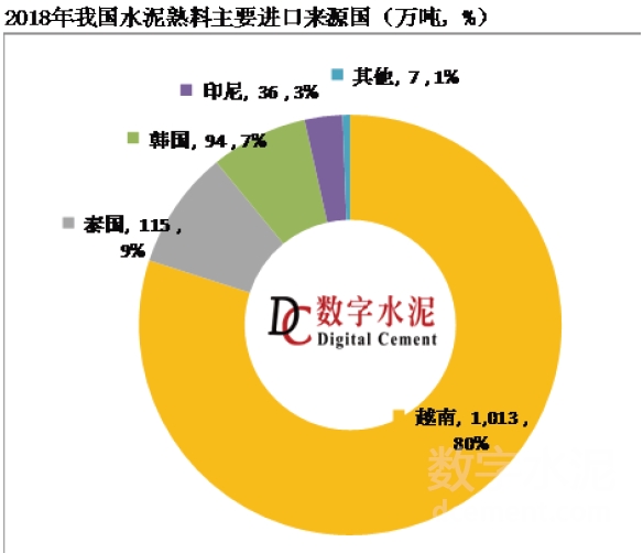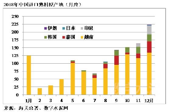3、熟料進(jìn)口量來源國(guó)主要來自越南、泰國(guó)和韓國(guó)