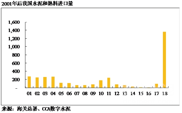 2017年以前,中國(guó)水泥年進(jìn)口量最多不到300萬噸,2016年更是達(dá)到了歷史低谷的6.5萬噸。但隨著我國(guó)沿海地區(qū)熟料價(jià)格高企,2018年以水泥熟料為主要產(chǎn)品的進(jìn)口量爆發(fā)性增長(zhǎng),僅當(dāng)年的進(jìn)口量就達(dá)到1363萬噸,比2005-2017年13年進(jìn)口量的總和還多。