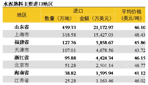 從進(jìn)口熟料的區(qū)域來看,山東占總進(jìn)口量的36%,位于長(zhǎng)三角區(qū)域的上海、浙江、江蘇合計(jì)占35%,華南福建、海南兩省合計(jì)占13%。
